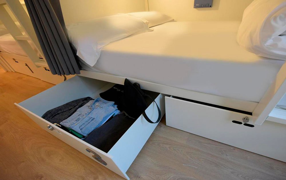 Es bastante económico para lo que ofrece, y muy limpio y silencioso. Las camas son cómodas y tienen enchufes y cortinas en cada una.